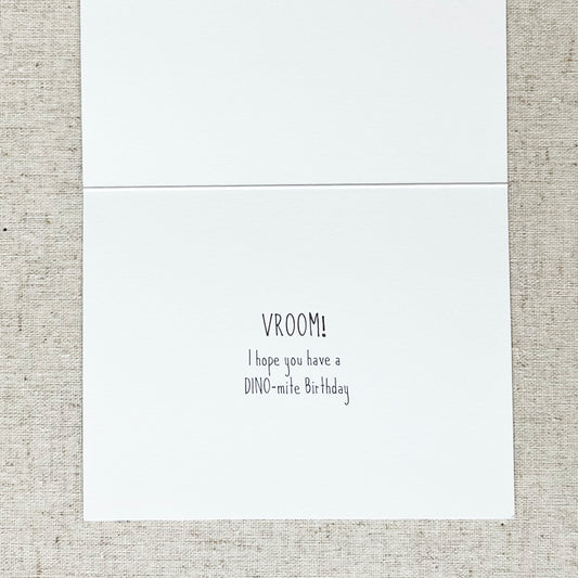 Dinosaur Race Car Birthday Greeting Card