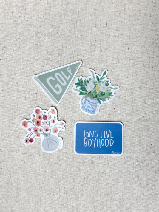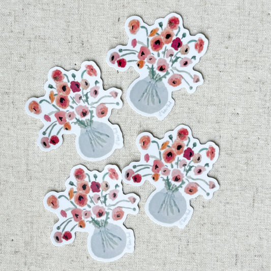 White Cosmos in Blue and White Vase 2.5” Sticker