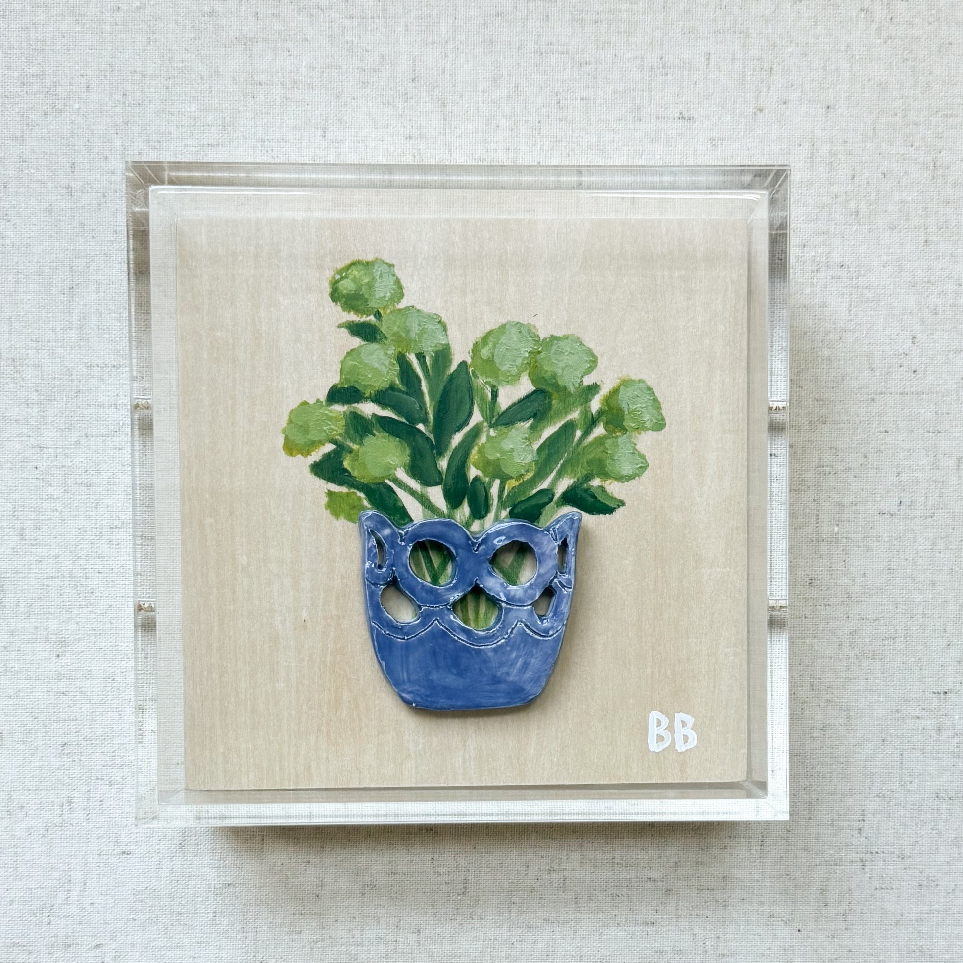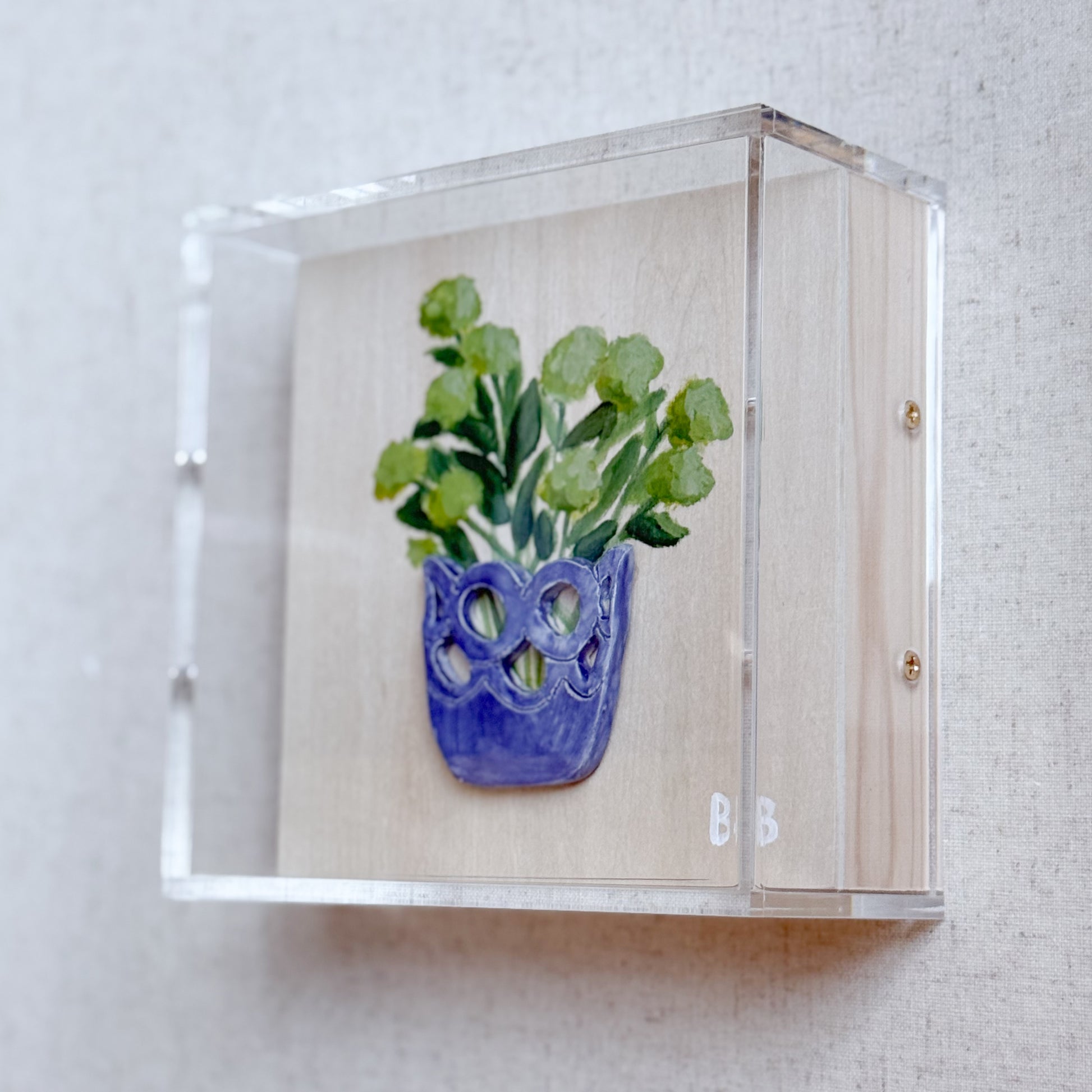 Bring a collectible heirloom into your home with this one-of-a-kind 6x6 acrylic shadow box featuring a handmade ceramic vase paired with an original painted floral design. Each piece is a celebration of craft and creativity, merging the tactile beauty of ceramics with the elegance of fine art.